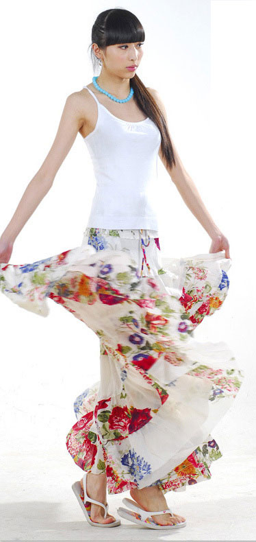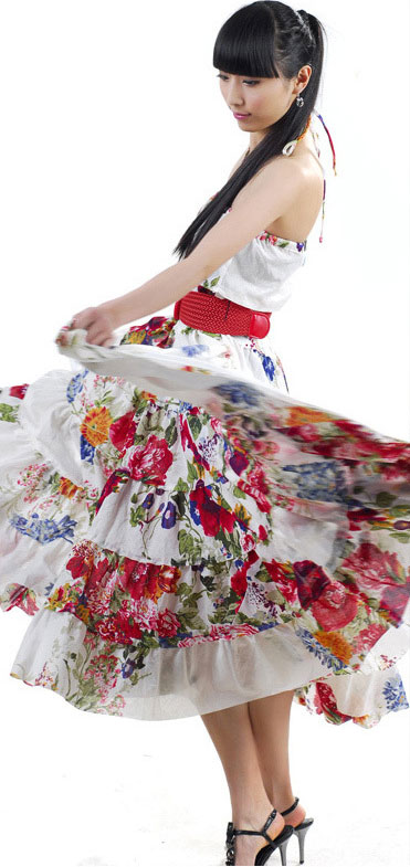 Юбка и платье в одной модели? Да! Представляем Вам шикарный летний наряд - платье-юбка "Феерия". Модель "солнце-клёш" снабжена кулиской с регулируемыми завязками. Закрепите их на поясе - и станете обладательницей чудесной юбки; поднимите юбку выше и закрепите на груди, перекинув завязки через шею - и ультрамодное летнее платье готово! Дополните ансамбль широким контрастным ремнём, и смело можете появиться на торжественном мероприятии.