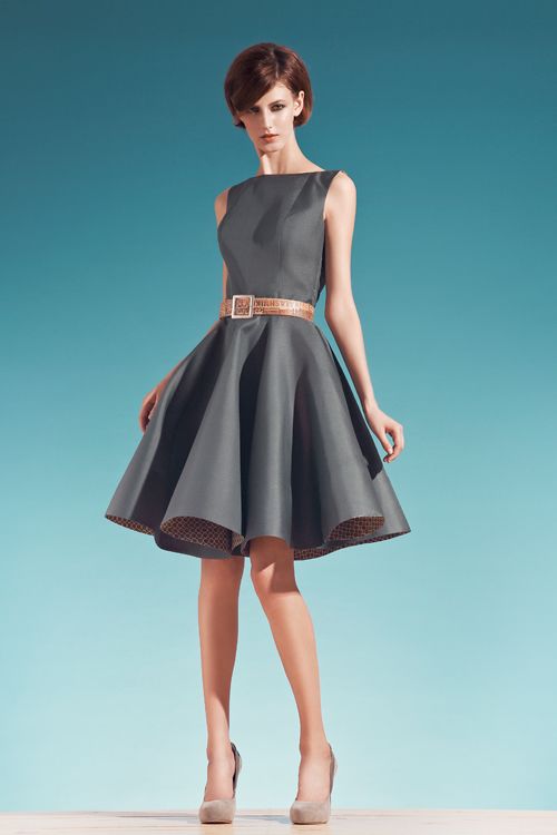 Ведь что такое шик? Неуловимое очарование шелка, стильный ремень, перекликающийся с подкладкой юбки-клеш, четкий графичный силуэт, который с одним только вашим движением оживает и притягивает к себе восхищенные взгляды.