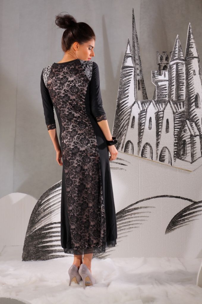 Спереди и сзади посередине модель украшена широкой вставкой из кружева. В этом платье вы всегда будете выглядеть потрясающе.