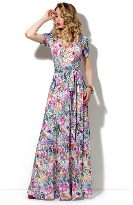 Длинные платья с высоким разрезом на ноге уже давно покорили красные дорожки и вот наконец вошли в повседневную жизнь модниц. Платье отрезное по линии тали, на полочке глубокий вырез на запах и драпировка.