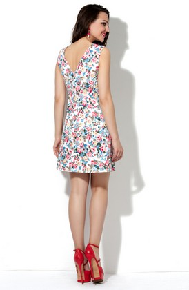 Оригинальность платью придает грубокий V-образный вырез горловины на спинке. В среднем шве спинки потайная молния.