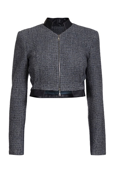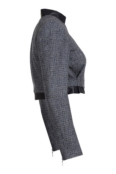Укороченный шерстяной жакет прямого силуэта на подкладке. Отделка из натуральной кожи