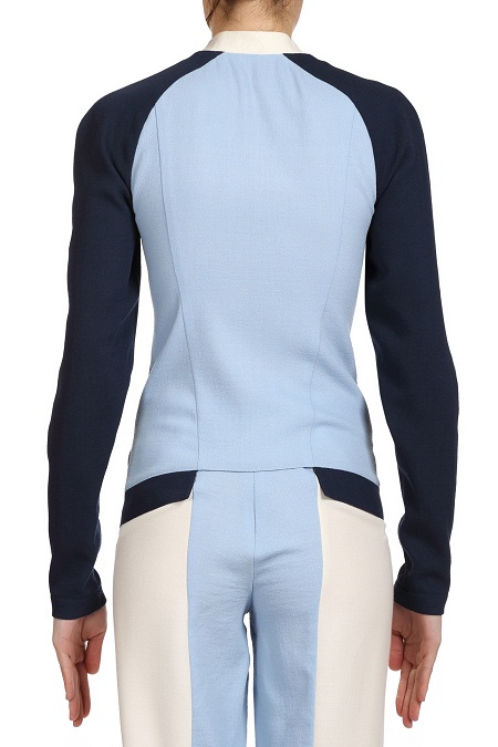 Приталенный жакет из шерстяного крепа с воротничком-стойкой и рукавами-реглан