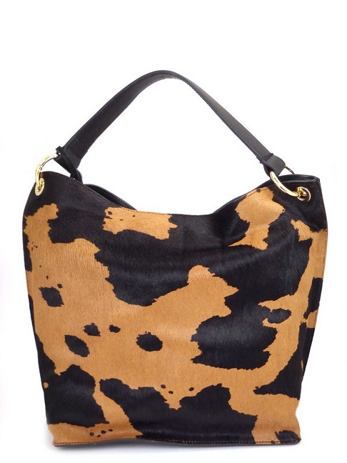 Сумка hobo классической формы в модном исполнении : мех пони с принтом под окрас коровы ( хит этого сезона!). Естественное сочетание: мягкая кожа черного цвета с черными пятнами на рыжем пони. Чем хорош мех пони ( он же каваллино, что мех лошади) ? Мех очень практичен: к нему не пристает грязь, а дождь с него скатывается как вода с утки)) к тому же пони можно делать с разными яркими принтами и они будут держаться гораздо дольше, чем принты на обычной коже. Сумка мягко ложится на плечо.