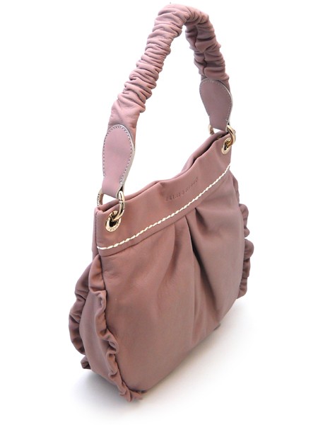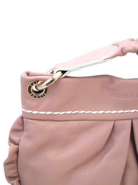 Маленькая розовая кожаная сумочка с жатой ручкой итальянской марки PLINIO VISONA.