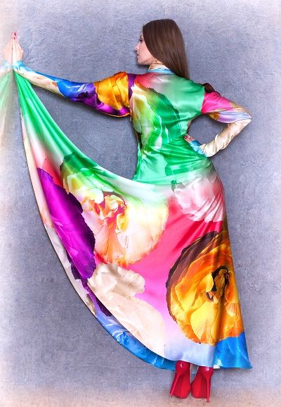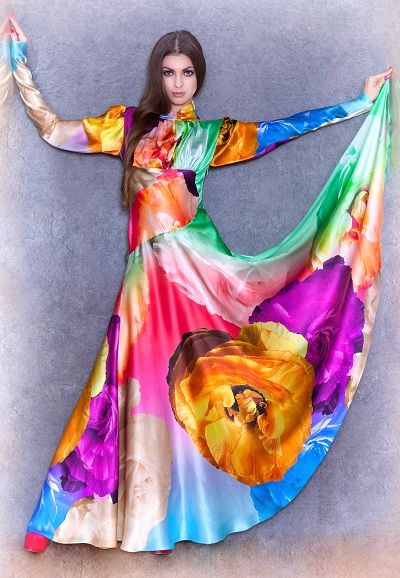 Супер актуальная в этом сезоне макси длина дополнена не менее актуальными трендами - яркий цветочный принт и высококачественный легкий шелк - вместе они создают незабываемый образ красоты, легкости и очарования.