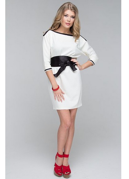 Такое стильное платье позволит Вам выглядеть успешно и женственно. Изделие с вырезом горловины лодочка, с оригинальным кроем рукавов, с поясом-кушаком