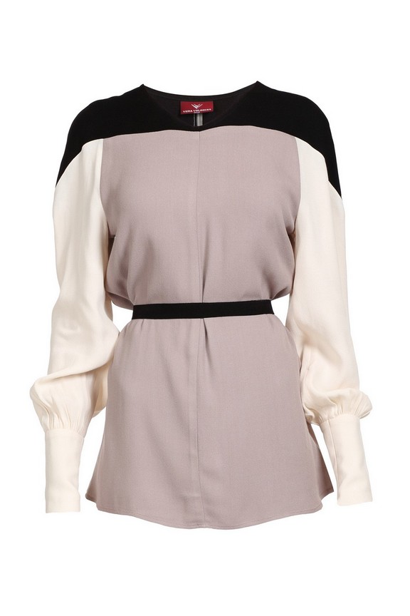 Блуза-туника в высокими манжетами .Выполнена из натуральной ткани крепового плетения.В комплекте контрастный поясок.