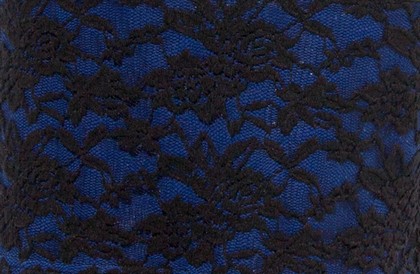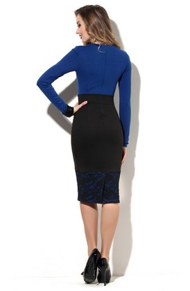 В среднем шве спинки потайная молния, на юбке шлица. Низ юбки отделан широкой кружевной вставкой. Классический силуэт, длина платья и кружевная вставка делают модель очень элегантной.