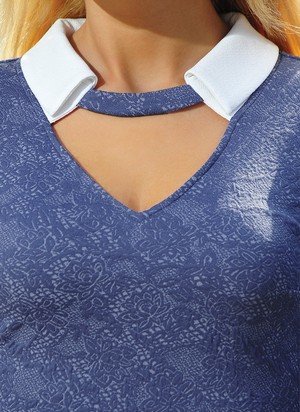 Женское платье приталленого кроя, с длинными рукавами и фигурным воротником.