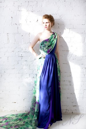 Вечернее платье со шлейфом! в единственном экземпляре в этом цвете!!! Двухслойная юбка, верхний слой с разрезами, что делает платье летящим