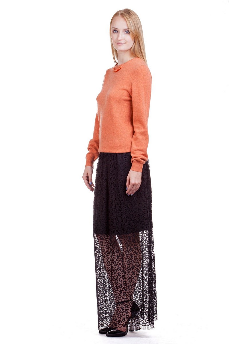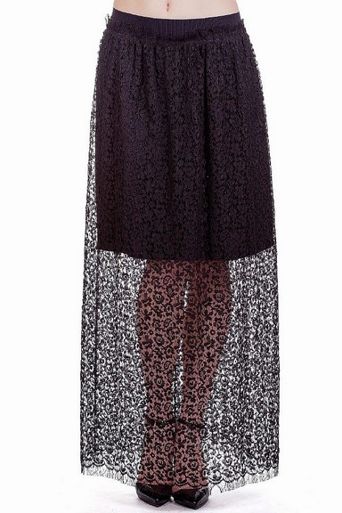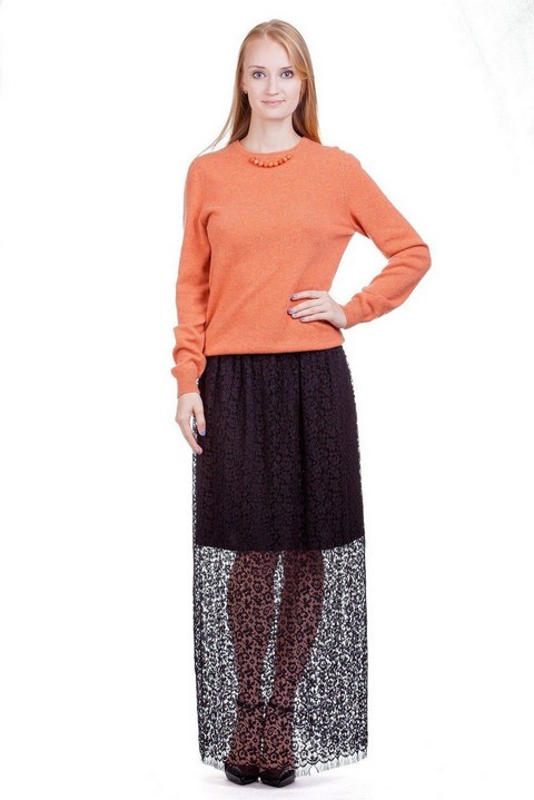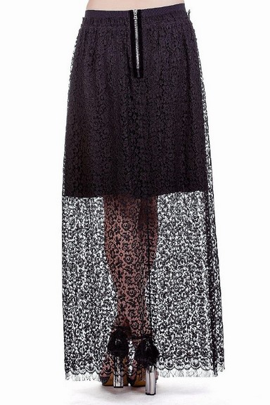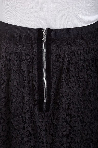 Юбка-макси, выполненная из хлопкового кружева французской фирмы Solstiss, на укороченной шёлковой подкладке. Юбка застегивается на чёрную бархатную молнию швейцарской фирмы RiRi. Длина юбки от талии без учета пояса 102 см., длина подкладки 48 см.