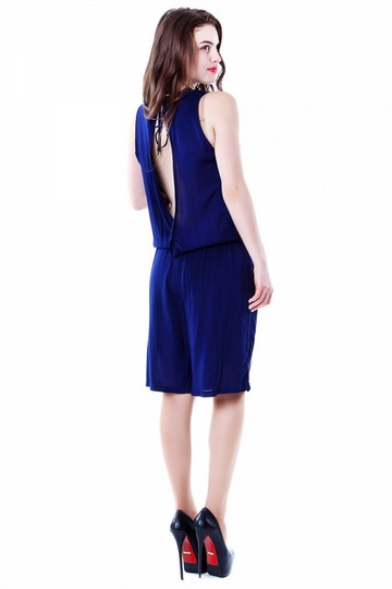 Летний легкий комбинезон с карманами ярко-голубого цвета. Модель без рукавов с открытой спиной. Модель покоряет своей универсальностью и практичностью. Не требует особого ухода, не садится при стирке.