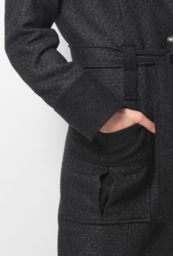 Стильное пальто классического прямого кроя, который передает и неординарный эффект фасона плаща, придающий традиционному силуэту особый шарм и характер. Выразительные карманы и широкие манжеты с отворотами придают элегантности модели некую спортивность и экспрессию, а деликатный мельчайший узор подчеркивает глубину изысканного серо-графитового цвета.