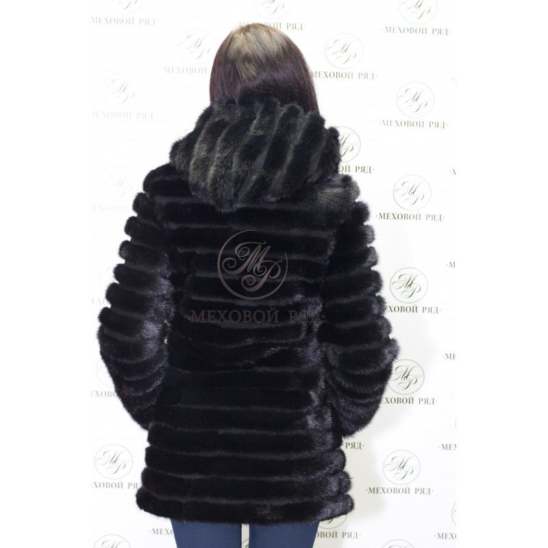 Невероятно красивая шуба из меха европейской норки, комбинирована натуральной замшей. Капюшон хорошо держится на голове, не спадает и позволяет обойтись без головного убора.Застегивается норковая шубка на молнию. Сшита из качественных поперечных пластин, мех имеет одинаковую длину остевого волоса, плотный подпушек.