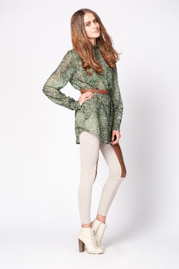 Блуза выполнена в классическом покрое "рубашка", достаточно длинная, полностью закрывает бедра и вполне может сыграть соло или в дуэте с любимыми леггинсами. Рукава длинные, широкие, на груди практичные карманы.