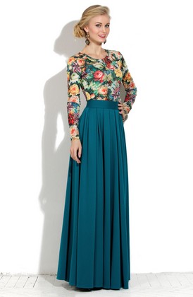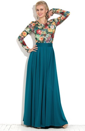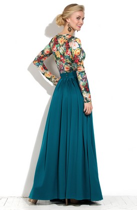 Юбка в пол из трикотажа – лакоста. Данная модель на широком поясе с застежкой на спинке на потайную молнию и 2 пуговицы. Юбка в глубокую частую складку, что придает модели элегантности и утонченности.