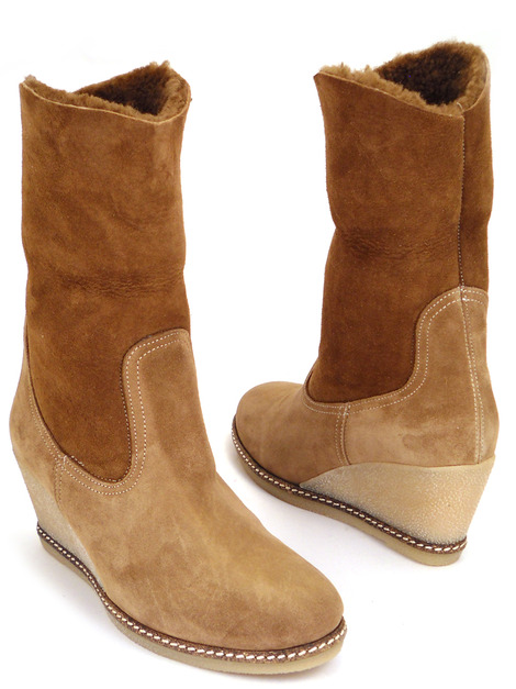 Полусапожки на танкетке высотой 6 см. Модель утепленная, подкладка натуральный мех (мутон). Высота голенища 20 см, с отворотом 12 см. Обхват голенища 26 см.