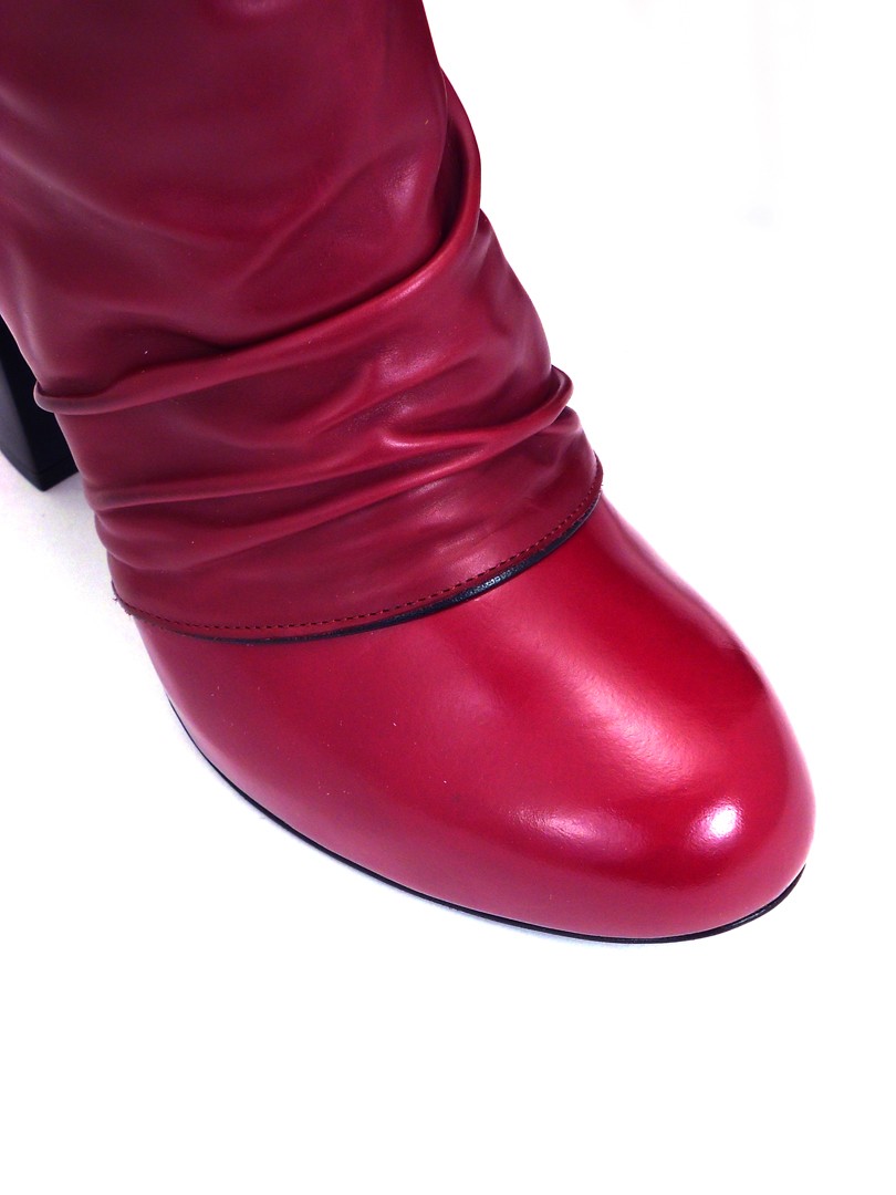 Осенние полусапожки брусничного цвета на высоком каблуке и скрыт
