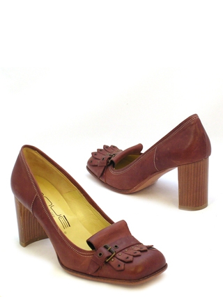 Женские туфли из натуральной кожи с украшением под старую латунь.