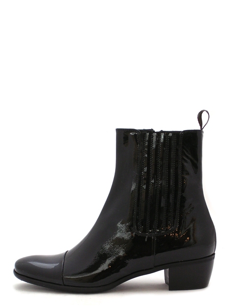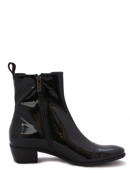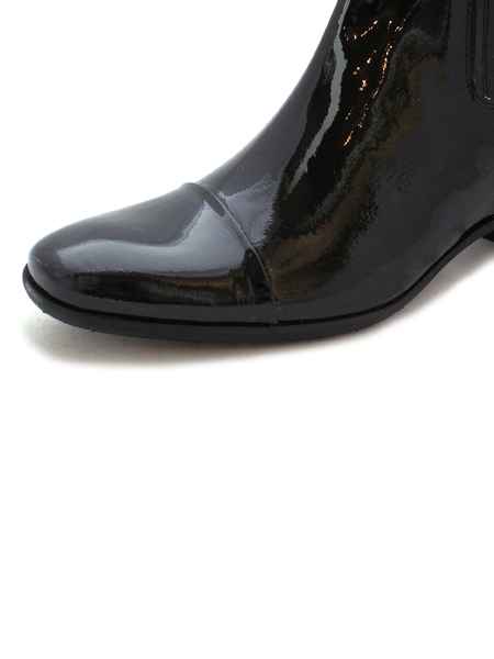 Лаковые женские ботинки из натуральной кожи с удобной колодкой на стандартную ступню, на голенище расположена эластичная вставка. Подкладка со стелькой из телячьей кожи, резиновая подошва. Голенище высотой 15 см. Ботинки имеют устойчивый небольшой каблук высотой 3,5 см.