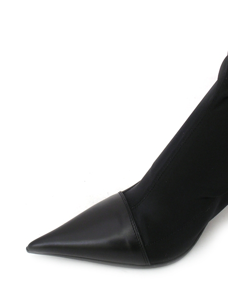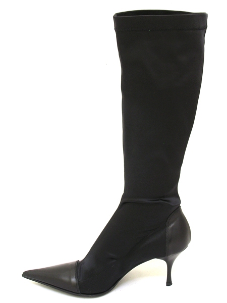 Изящные, утонченные осенние сапоги черного цвета. Изготовлены из натуральной кожи и ткани-стрейч. Голенище сапога облегает ногу. Подошва изготовлена из натуральной кожи с резиновым укреплением. Утонченный, невысокий каблук высотой 9 см. Мысок сапог острый. Сапоги очень эффектные, новинка сезона 2008/2009. мы сможем максимально точно подобрать Вам обувь.