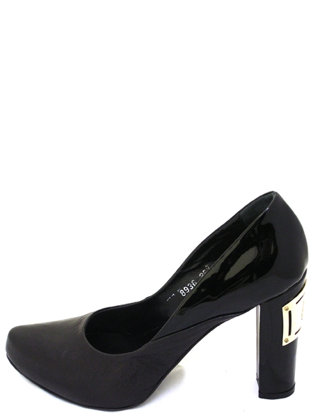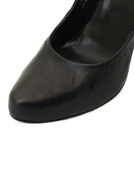 Туфли из двухфактурной кожи: матовой натуральной кожи и натуральной лаковой кожи черного цвета. Оригинальный дизайн модели. Подкладка из телячьей кожи. Подошва изготовлена из натуральной кожи с резиновым укреплением. На высоком устойчивом каблуке высотой 11 см фирменный металлический логотип золотого цвета. Скрытая платформа 2 см. Фактическая высота каблука 9 см. Исключительно удобная колодка, подходит под стопу стандартной полноты.