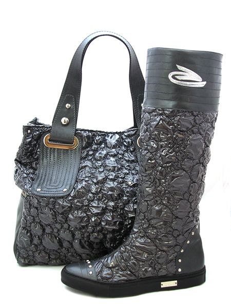 Материал верха: натуральная кожа, скомбинированная с водонепроницаемым синтетическим материалом серого цвета ( антрацит), простеганным в виде пузырьков. Подкладка нат. кожа.
