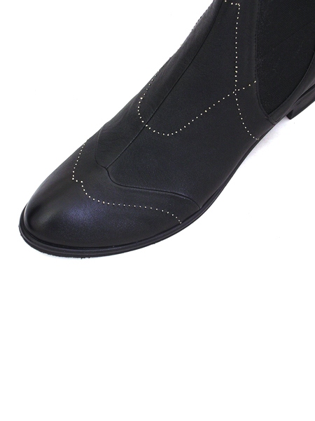 Строгие и элегантные женские ботинки из натуральной кожи черного цвета с эластичными вставками.