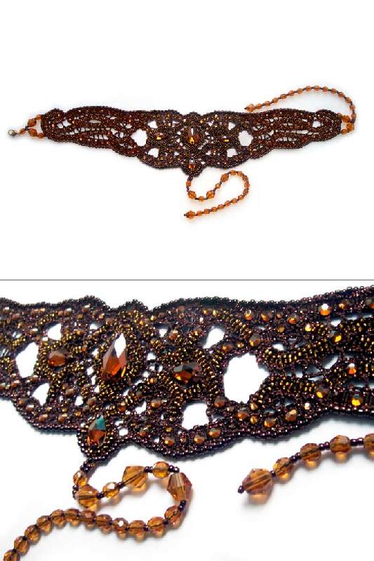 Материалами за основу служит – полиэстер (Германия), соединяющая тонкая металлическая нить - металик мулинэ (Франция), бисер (Япония), стразы, кристалл Swarovski (Австрия).