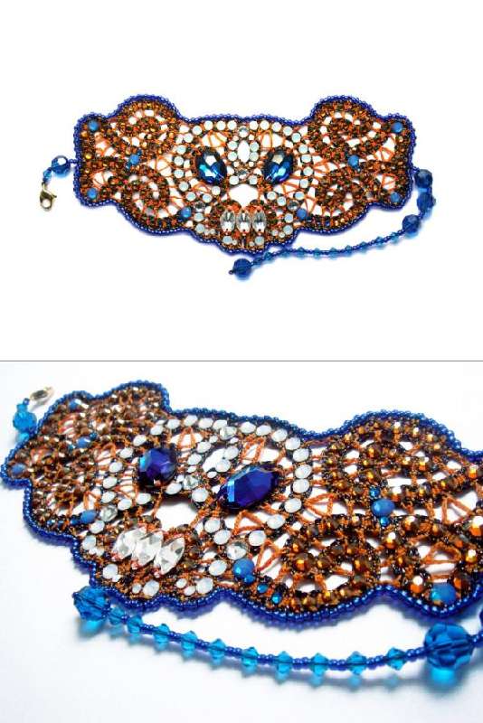 Материалами за основу служит – полиэстер (Германия), соединяющая тонкая металлическая нить - металик мулинэ (Франция), бисер (Япония), стразы, кристалл Swarovski (Австрия).