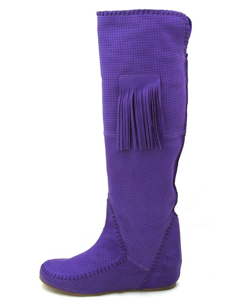 Сапоги из натуральной перфорированной замши великолепного фиолетового цвета.