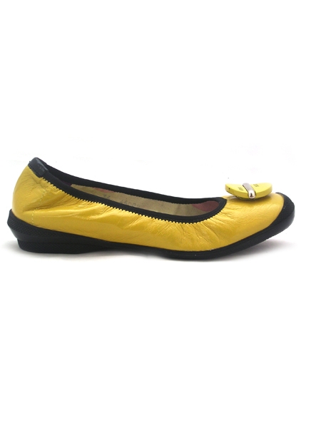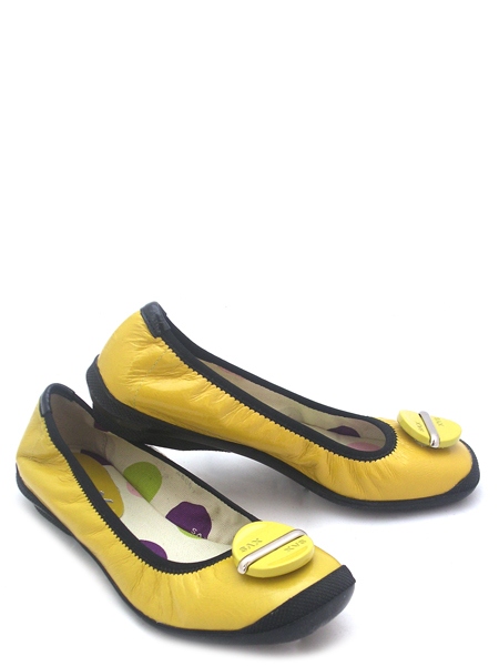 Туфли на плоской подошве яркого солнечного цвета практичны, удобные и универсальные на все случаи жизни: для прогулок, для вождения машины, для отдыха на море.