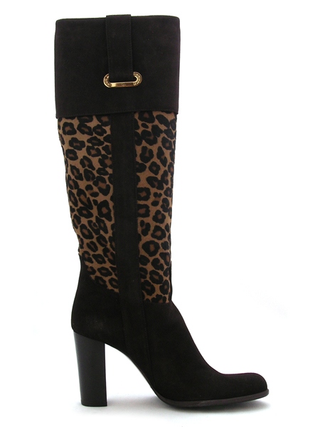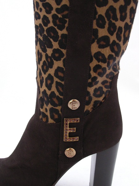 Материал - верх: натуральная темно-коричневая замша в сочетании с леопардовой; низ: подошва из натуральной кожи с резиновой профилактикой. Каблук 9 см.