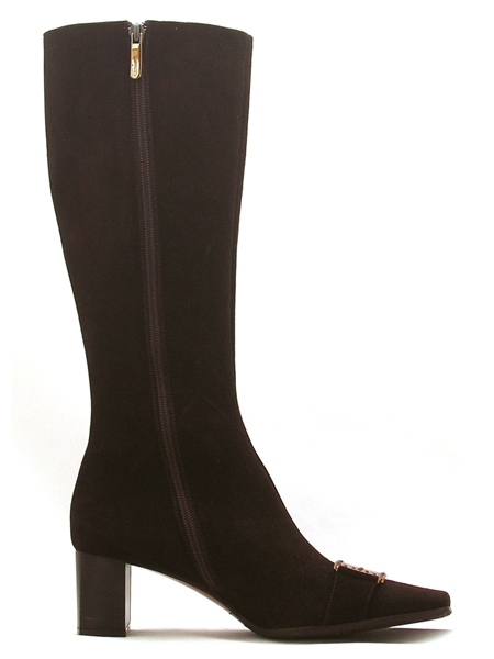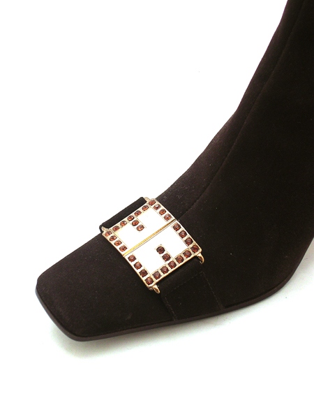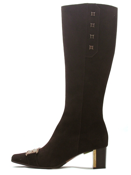 Удобные и комфортные сапоги осенние с квадратным вытянутым мысом, колодкой на любую полноту и подъем, приятного шоколадного оттенка, мыс носка украшен пряжкой со стразами Swarovsky.