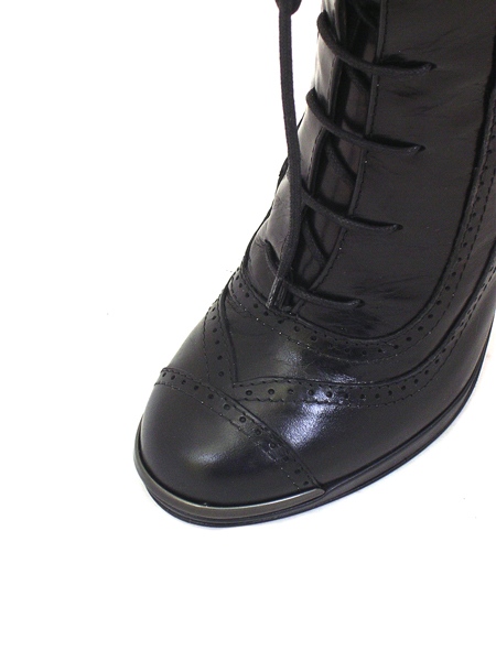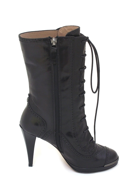 Материал - верх: натуральная кожа черного цвета, подкладка и стелька из натуральной телячьей кожи кремового цвета; низ: подошва из натуральной кожи с резиновой профилактикой. Каблук 10 см.