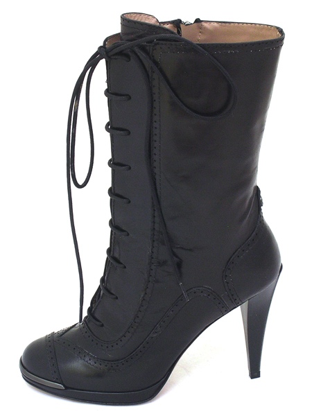 Интересные сапоги осенние на остром каблуке, с округлым мысом, колодкой на любую полноту и подъем за счет шнуровки.