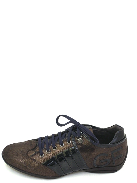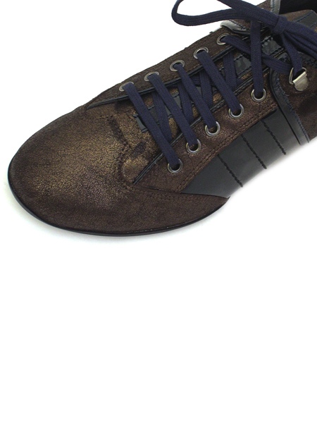 Материал - верх: натуральная бронзовая замша в сочетании с темно-синей лаковой кожи, подкладка из натуральной телячьей кожи; низ: подошва из резиновой платформы.