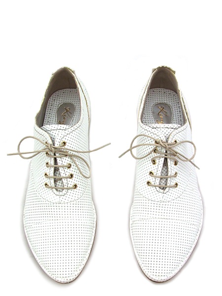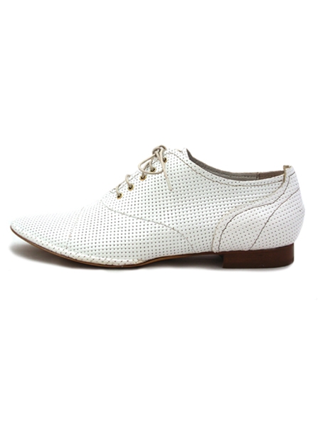 Материал - верх: натуральная лаковая кожа классического молочного цвета с имитацией под кольчугу, подкладка из натуральной кожи. Каблук 1,5 см.