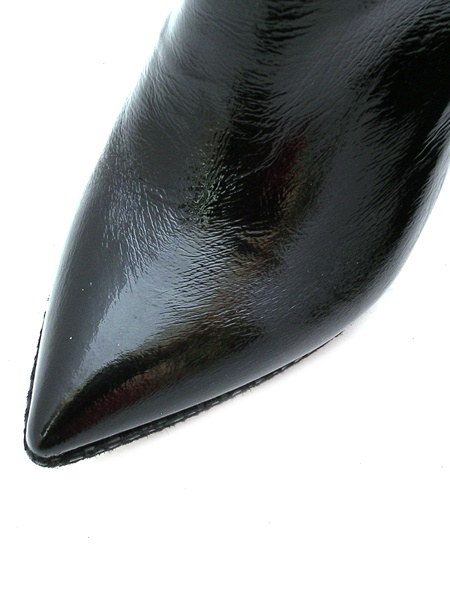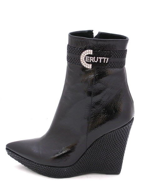 Материал - верх: натуральная лаковая кожа классического черного цвета, молния сбоку, подкладка из натуральной кожи, низ: танкетка обтянута натуральной кожей с имитацией под питона, высота плата - 2,5 см. Каблук 11,5 см.