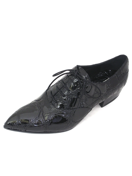 Материал - верх: натуральная лаковая кожа классического черного цвета с имитацией под рептилию, подкладка из натуральной кожи; низ: натуральная кожа. Каблук 3 см.
