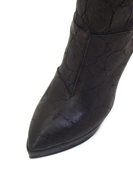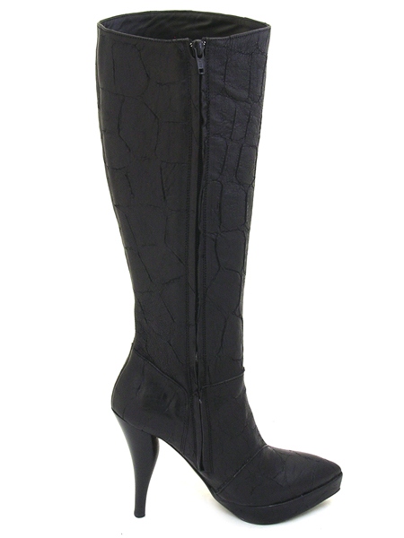 Материал - верх: натуральная матовая кожа классического черного цвета с имитацией под крокодила, подкладка из натуральной кожи; низ: натуральная кожа. Каблук 10 см.