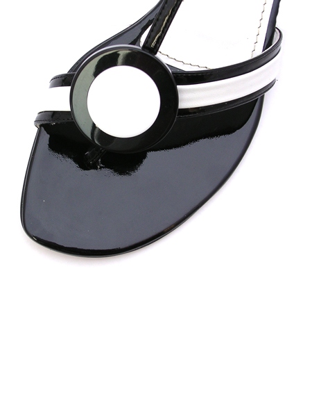 Модные босоножки выполнены в черно-белой гамме, с круглой интересной пряжкой. Благодаря низкому каблуку, лаконичности, контрастным, но универсальным цветам босоножки очень удобные и сочетаемые с любым типом одежды, будь то джинсы или маленькое коктейльное платье.