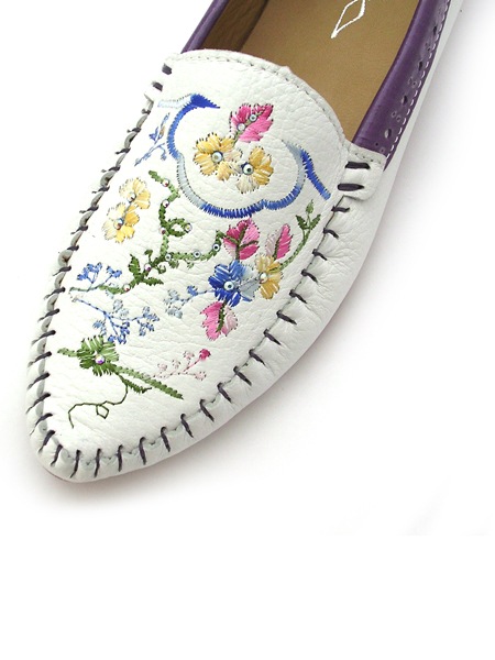 Мягкие и удобные мокасины молочного оттенка с декоративной яркой вышивкой ручной работы. Колодка на стандартную полноту. Идеально подойдут к любому цветовому наряду.