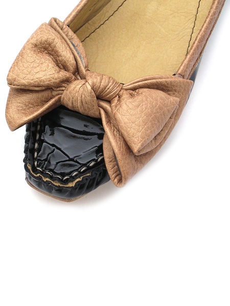 Женственные, мягкие и удобные мокасины классического черного цвета с контрастной карамельной окантовкой и шикарным бантиком в тон. Колодка на стандартную полноту.