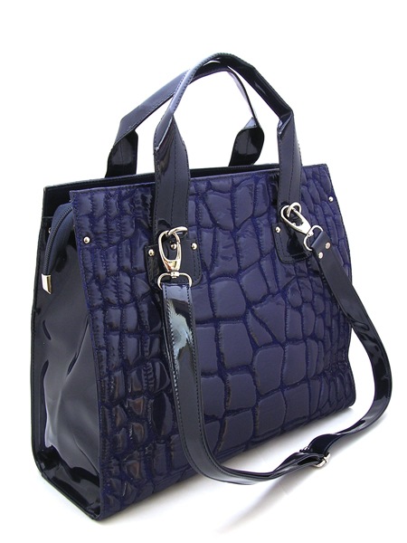 Есть длинный ремешок. Ручки и ремешок из лаковой кожи