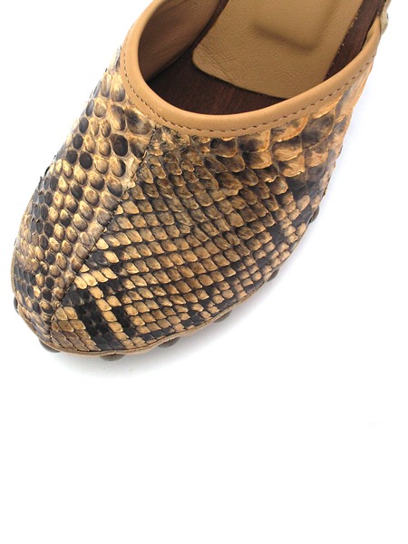 Всегда модные и сексуальные сабо из натуральной кожи питона на деревянной подошве.