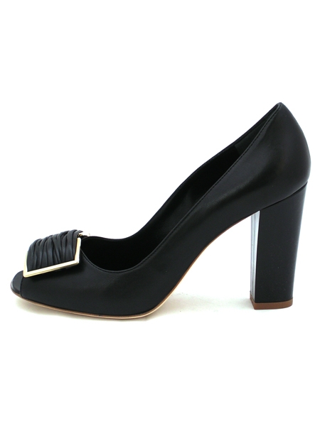 Изящные и женственные туфли на прочном каблуке. Колодка очень удобная, кожа мягкая, что дает ноге легкость и комфортность ношения. Туфли выполнены в стиле 70-х годов с открытым мысом и квадратной пряжкой. Модель универсальна - одинаково отлично подойдет и под офисный костюм, и под вечернее платье.