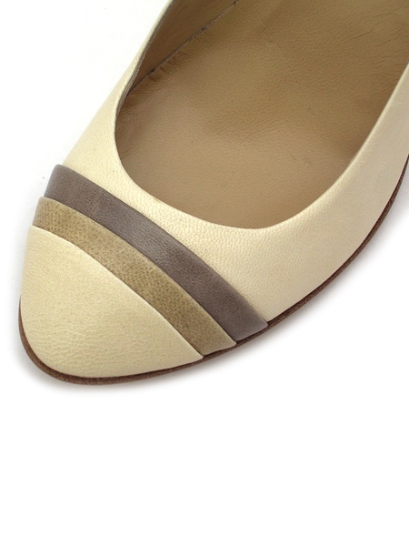 Женственные симпатичные туфли-лодочки в классическом исполнении. Колодка удобная, каблук устойчивый, мыс слегка заострен. Приятный теплый бежевый цвет модели оттеняется контрастными полосками коричневых оттенков, которыми декорирован мыс туфель.