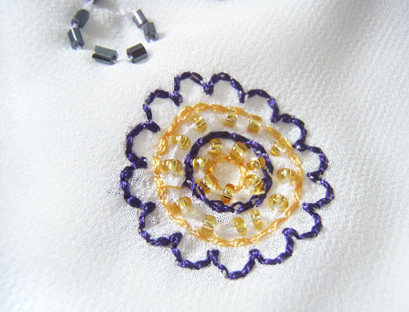 Лиф платья украшен вышивкой и бисером.